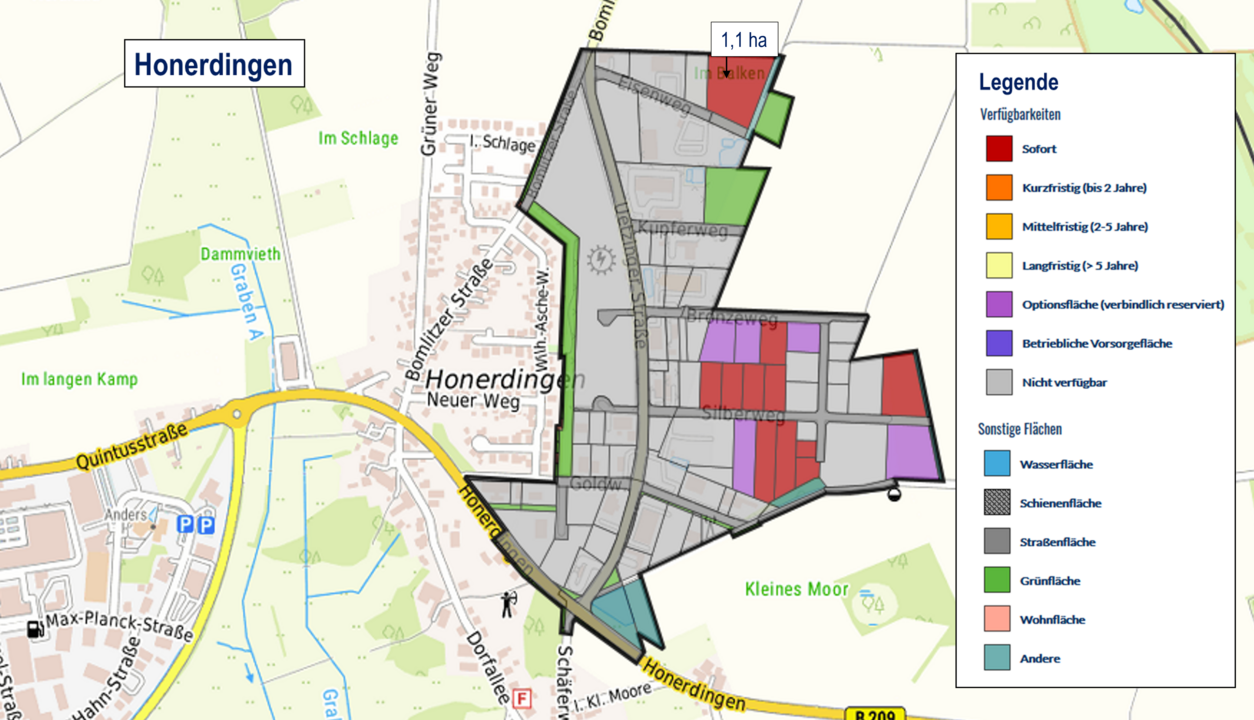 Das Gewerbegebiet Honerdingen wurde nach Osten hin erweitert. Die Flächen sind ab sofort verfügbar und bieten zusätzliche Möglichkeiten für ansiedlungswillige Unternehmen.